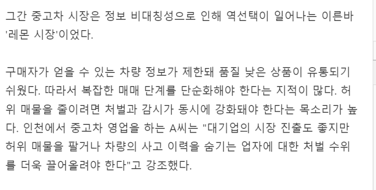 구매자가 원하는 충분한 정보가 제한되어 있고, 판매자가 보여주는 일부의 정보만으로 구매여부를 판단해야하는 부분때문이다.
