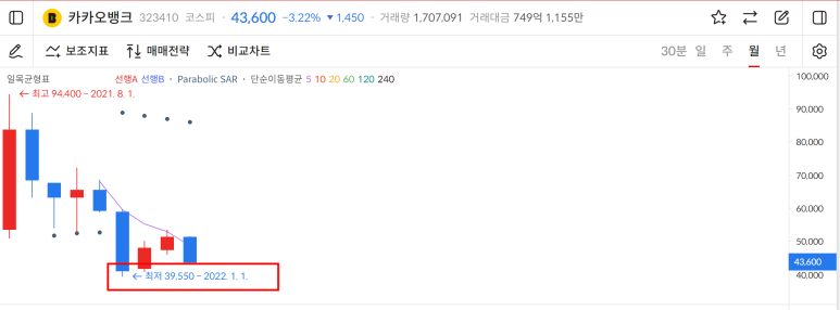 카카오뱅크는 3월에 손절하는게 가장 좋은 그림이었으나