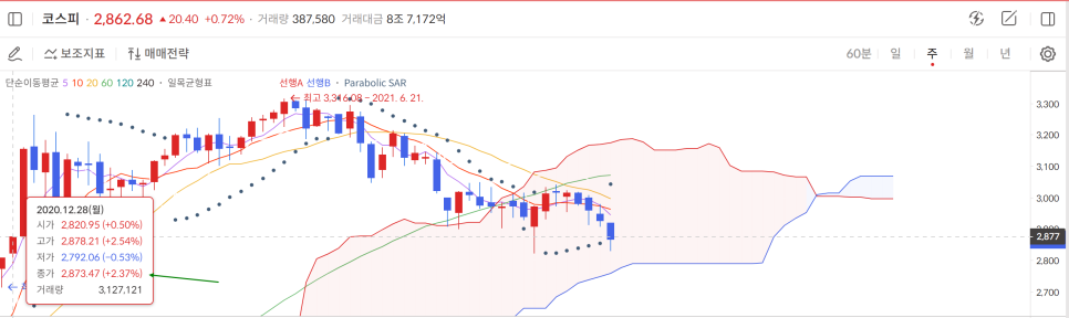 20년 12월28일 종가와 비슷한 위치해서