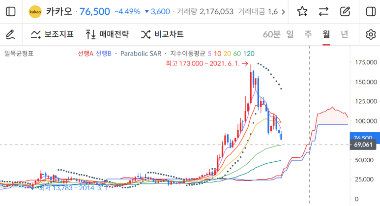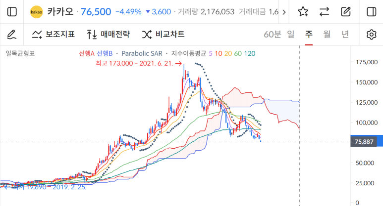카카오 역시 현재의 자리가 지지선이 될 수 있으나.