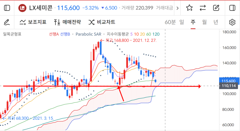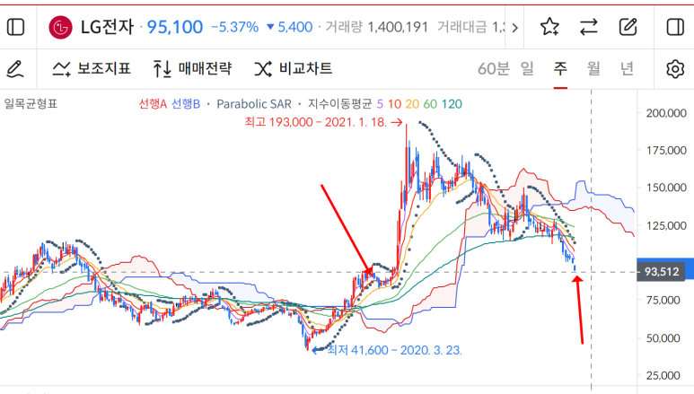 lg전자도 지금 지지선으로 볼 수는 있으나,