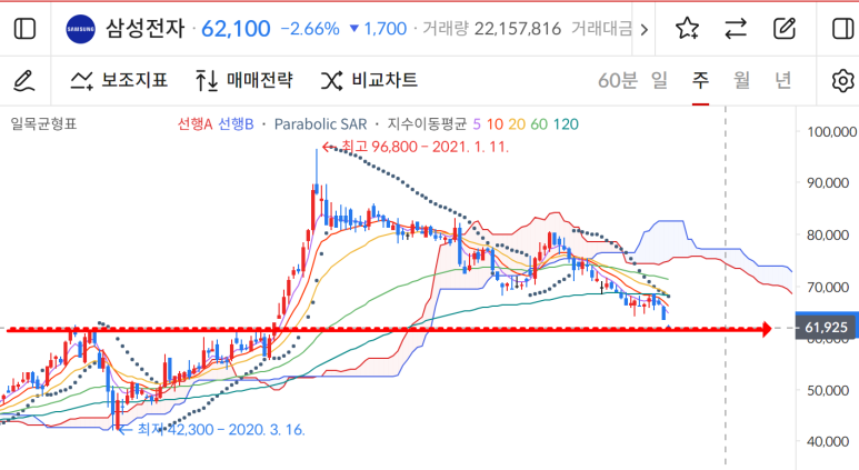 삼성전자 지지선, 62000원에서 어떻게 더 떨어질까.