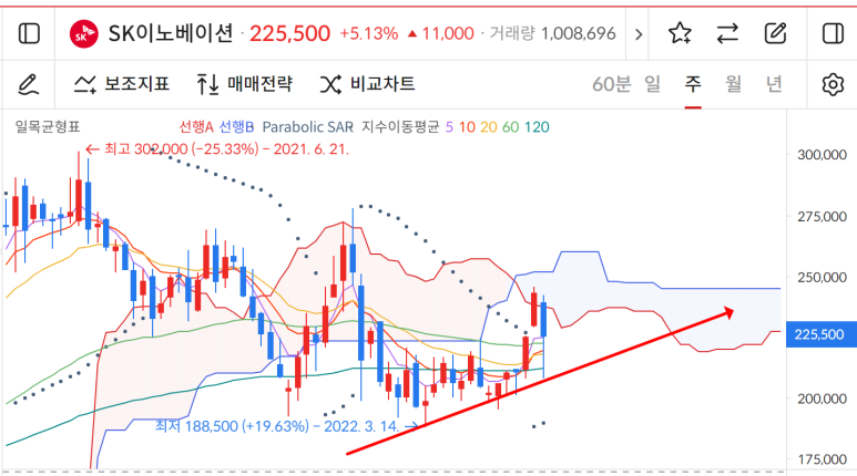 가까스로 저점을 높였던 sk이노베이션은 다음주도 기대해볼만해졌다.