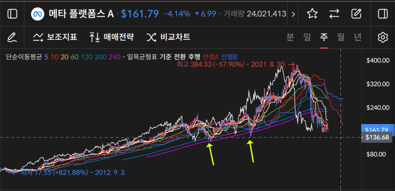 메타는 더 이상 성장의 모습이 보이지 않는데다가 지수도 좋지 않는다면 결국 투자자들에게 외면 받을 수 밖에 없을 것이다.