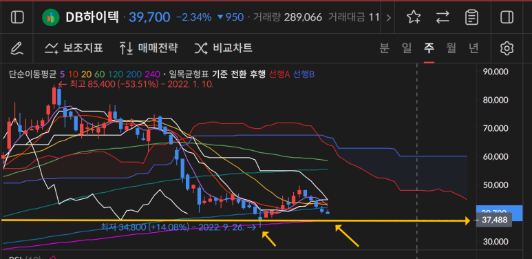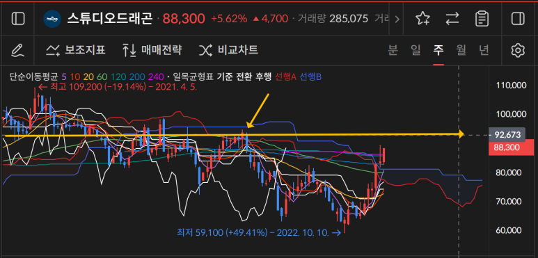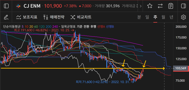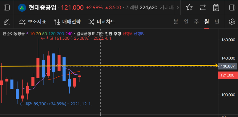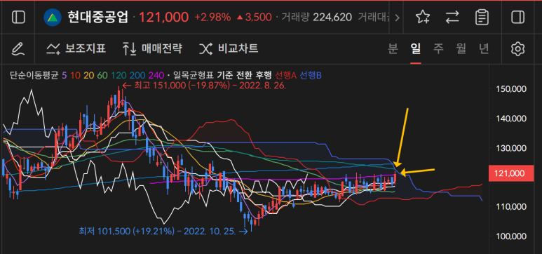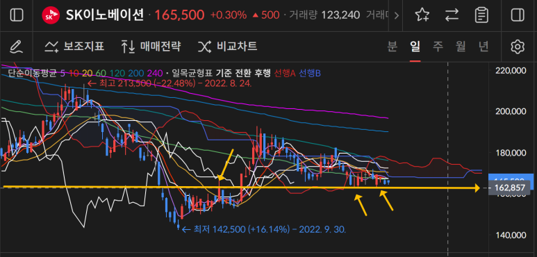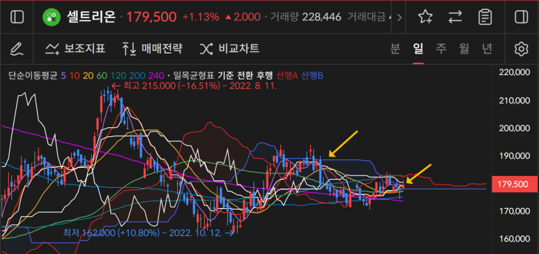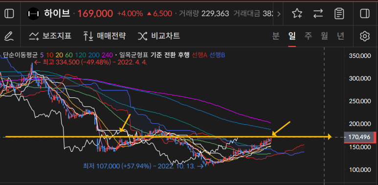 모두 240일선에 가까웠던 차트였고 며칠 전부터 보고 있던 종목이었다.