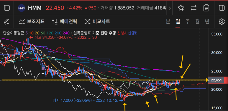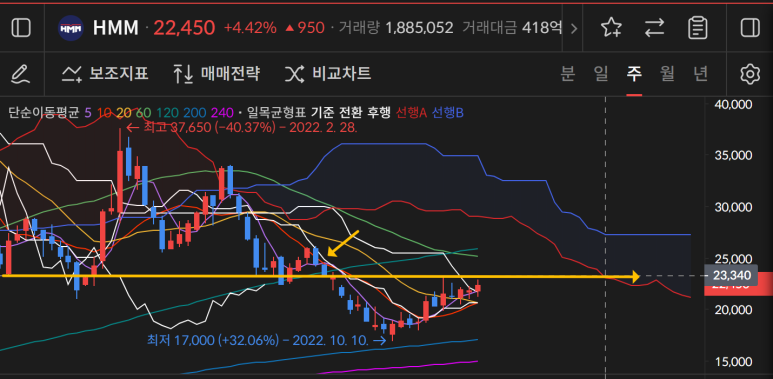 hmm이 간만에 관심종목에 들어갈만한 위치가 되었다.