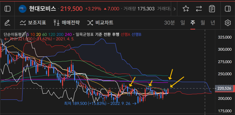 오늘 상승으로 240일선 터치를 한 상태다.