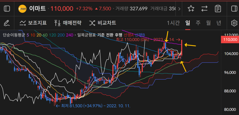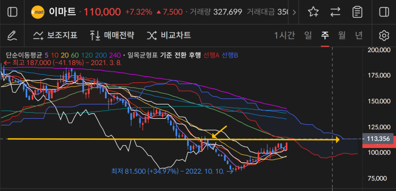 이마트는 240일선 근처에서 조정이 나왔고