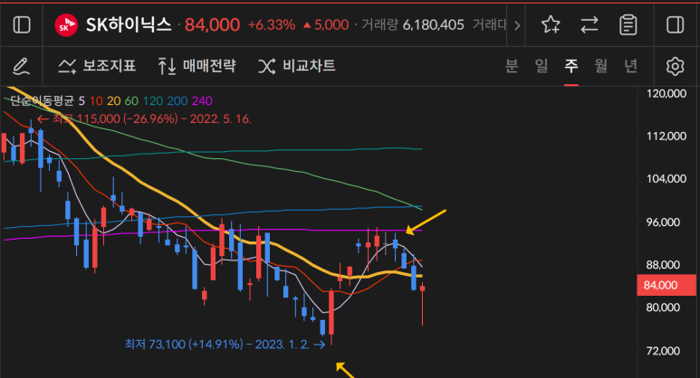 sk하이닉스가 73100원 위에서 상승이 나왔다.