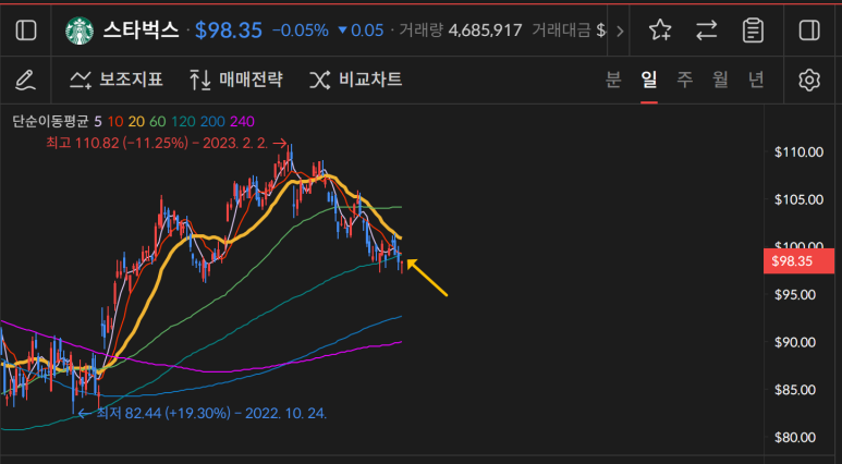 스타벅스는 하락세를 보여주고 있는데