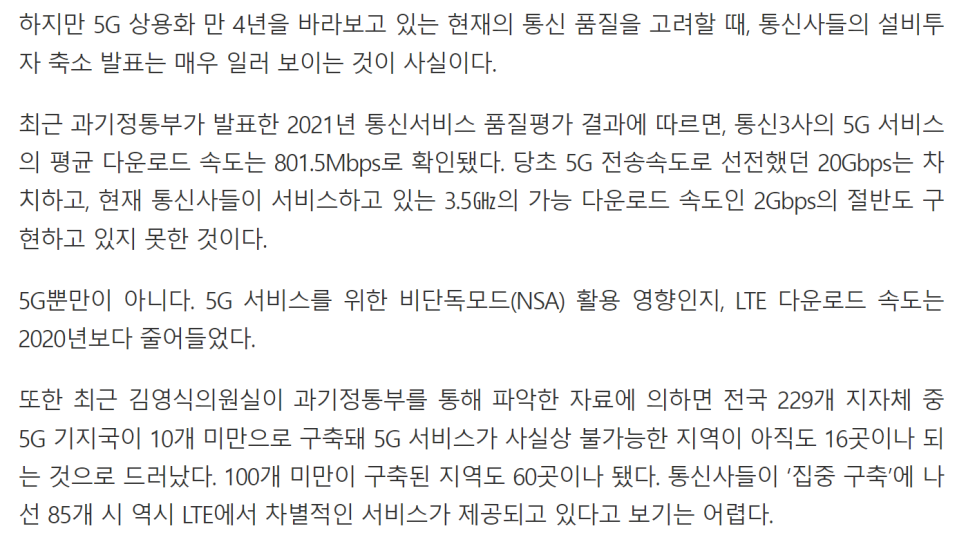 5g출시까지만 해도 서로 경쟁을 하며 투자했었는데 그 이후로 무슨일이 생겼을까