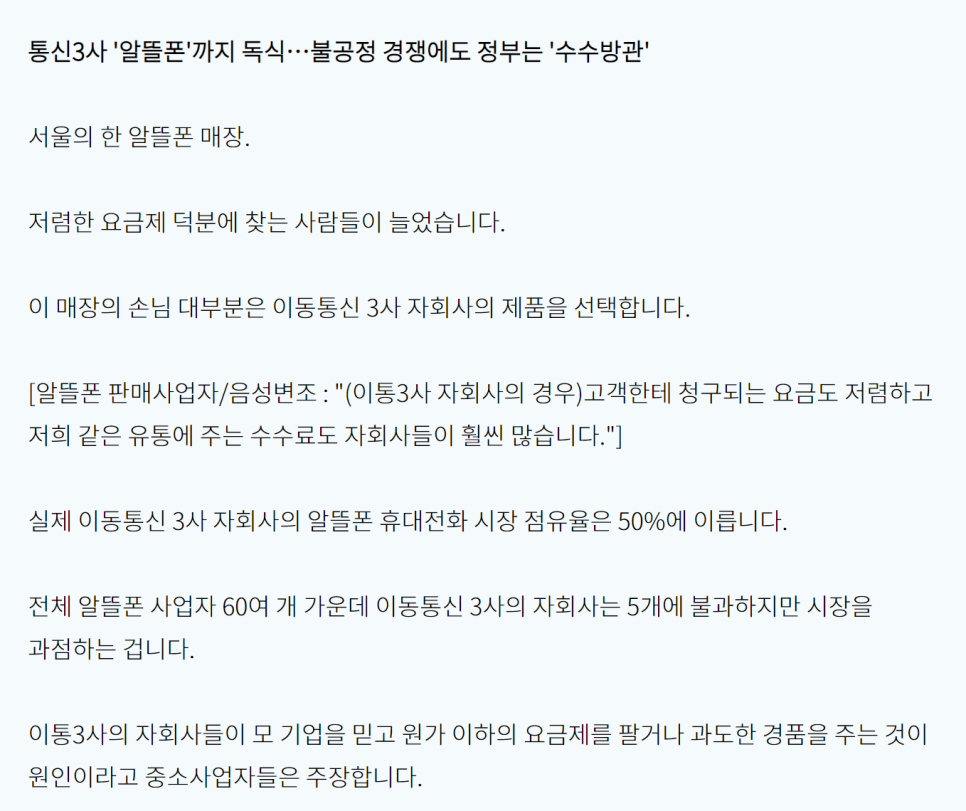 통신사의 경쟁이 줄어든 기사를 볼 수 있다.