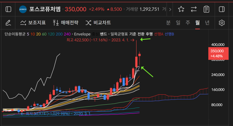 포스커퓨처엠은 4월 윗꼬리 이 후 조정이 나왔는데