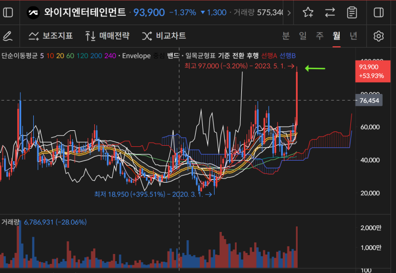 와이지와 에스엠을 비교할 순 없지만 와이지가 에스엠과 비슷하게 흘러간다고 가정하면