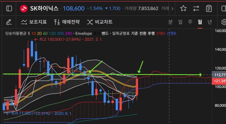 112000원 이후 윗꼬리가 나오면서 조정이 나오는 차례이며