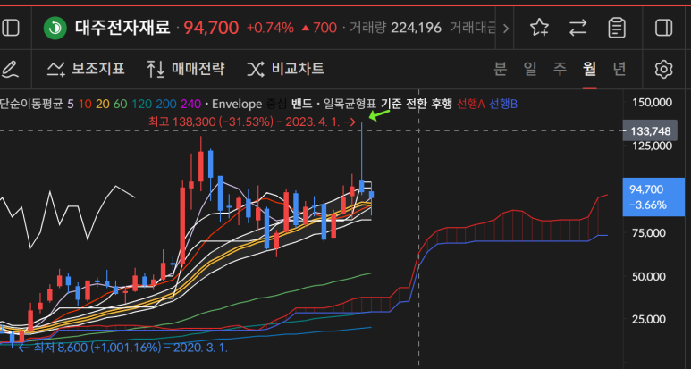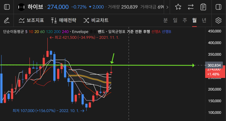 이제부터는 22년 11월의 고가였던 629000원을 목표할 수 있는 주식이 되었다.