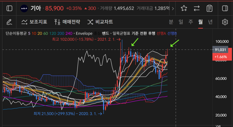 기아 역시 실적이 좋았고 5월 역시 양봉으로 기록되었지만