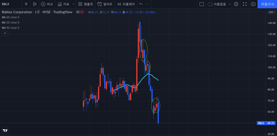 여전히 로블록스는 매수타이밍을 보는 기관이 있고