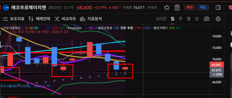 이후엔 5일선을 회복하는 양봉으로 마감되었는데