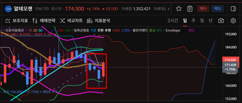 그러나 240일선에서 저항을 보이고 있으므로 240일선을 돌파하는 것이 중요하다.