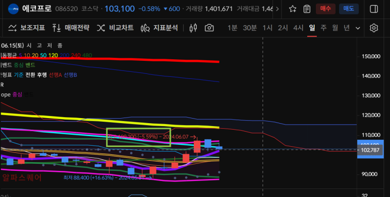 에코프로머티는 13만원을 돌파하며 120일선을 목표할 수 있게 되었다.