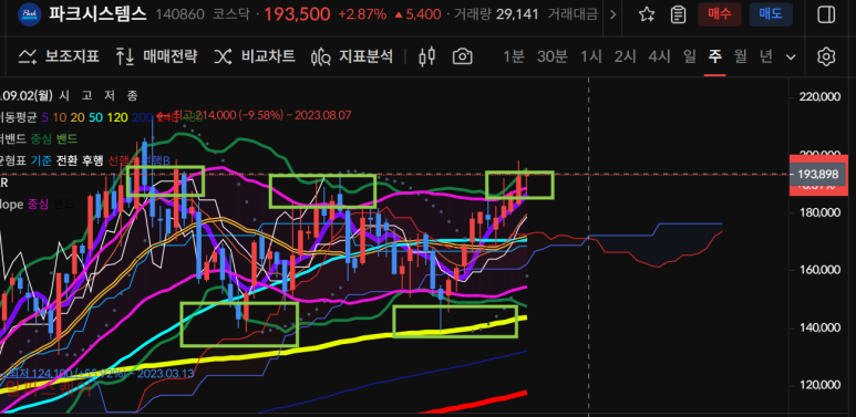 현재 상승세를 이어나가고 있기 때문에 전고점 214000원달성이 기대된다.