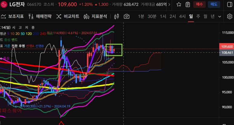 lg전자는 3일연속 양봉을 지켜나가며 다시 추가상승을 기대할 수 있게 되었다.