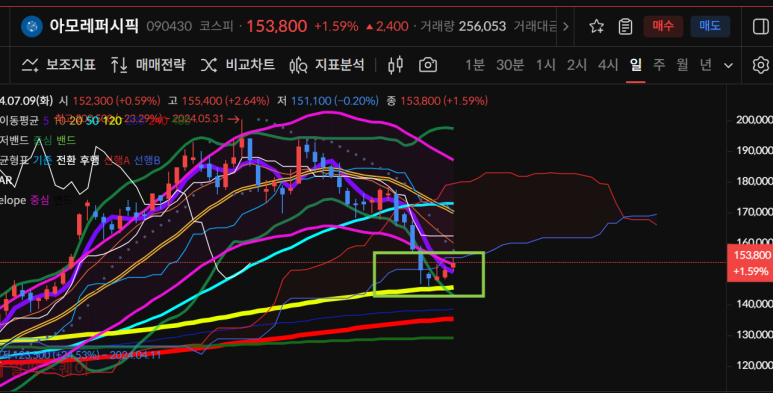 아모레퍼시픽은 고점 이후 120일선을 지키며 5일선을 회복한 상태다.