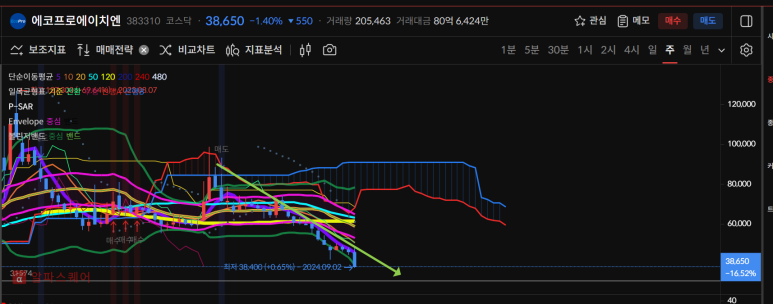 에코프로에이치엔은 하락세가 지속되고 있다.