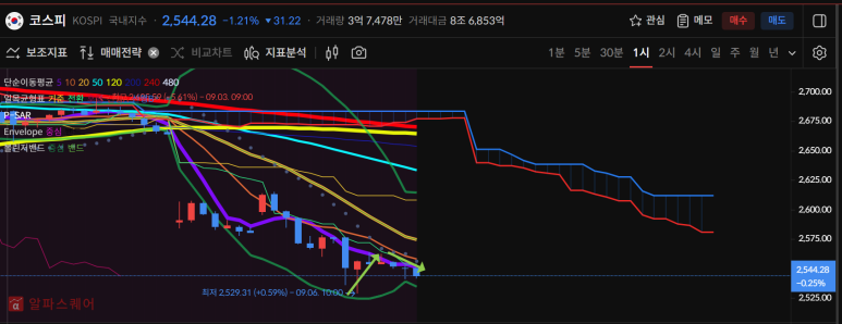 코스피는 240일선이 깨진 후로 3일연속 음봉으로 오늘 480일선을 터치하는 음봉으로 마감되었다.