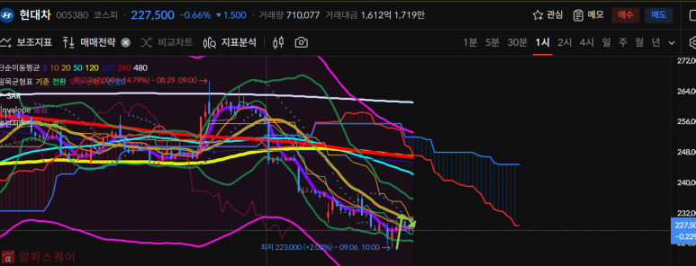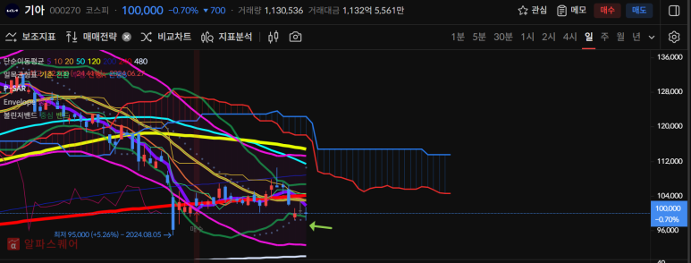기아는 오늘 음전으로 마감되면서 여전히 5일선회복이 필요한 상황이다.