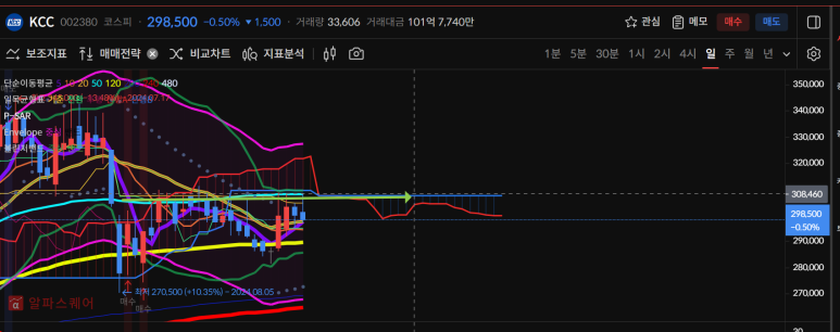 kcc는 50일선을 저항을 보이고 있다.