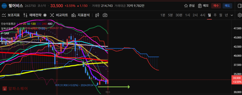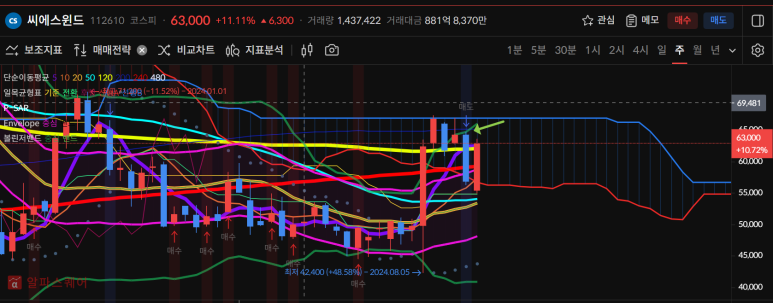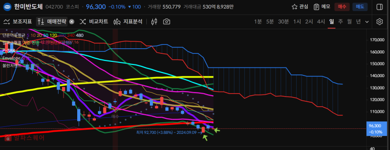 다만 주차트상 음봉의 길이를 보면 매수할 수 없는 모양이다.