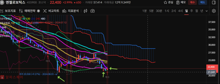 엔젤로보틱스는 8월5일의 저점 위에서 반등이 나오고 있다.