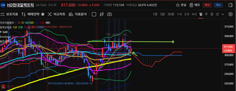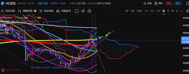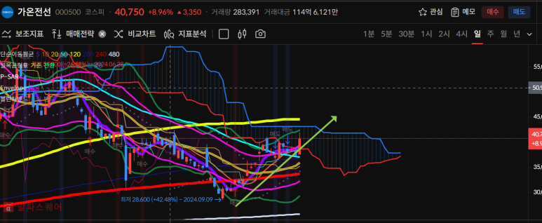 오늘은 양봉마감으로 50일선까지 터치했다.