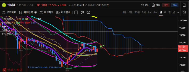 덴티움은 오늘 양봉으로 다시 중요한 50일선 회복기대가 생겼다.