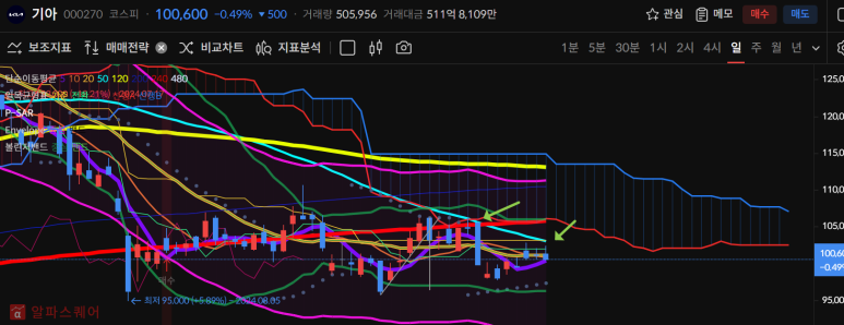 기아는 50일선 저항이 후 20일선의 저항에도 갇힌 모양이다.