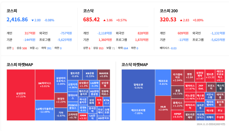 코스피는 삼전, sk하이닉스, 현대차, 카카오가 지수방어에 앞장섰고
