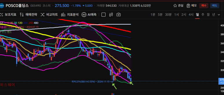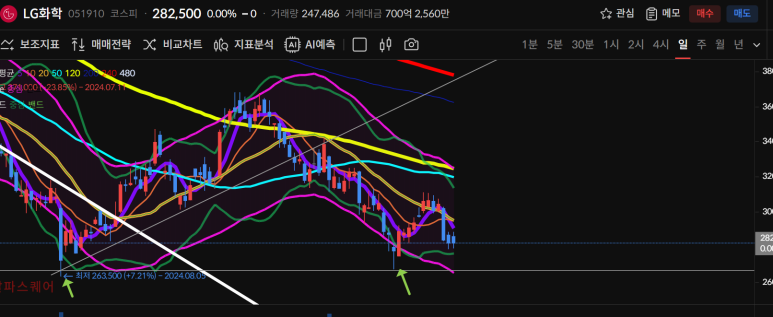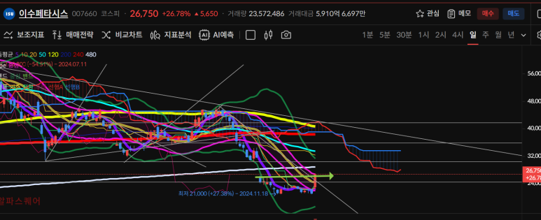 한가지 희망점이 있다면 50일선이 점점내려오고 있으며 480일선까지 회복가능성을 보이고 있다는 점이다.