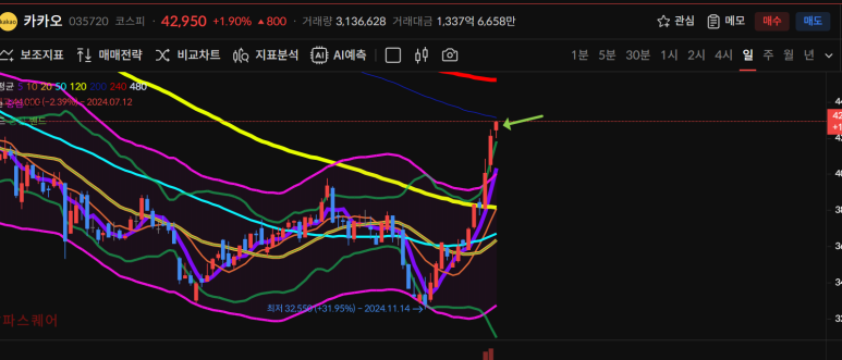 내수만 하는 카카오도 내수, 유통의 수혜종목이므로, 상승중인 카카오가 어디까지 오를지 지켜볼 필요가 있겠다.