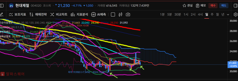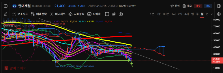 현대제철은 월차트로 저점에 위치하고 있다.
