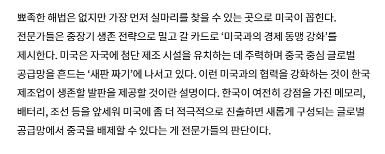 내수의 근본이 되는 제조업이 미국으로 몰리는 중이다.