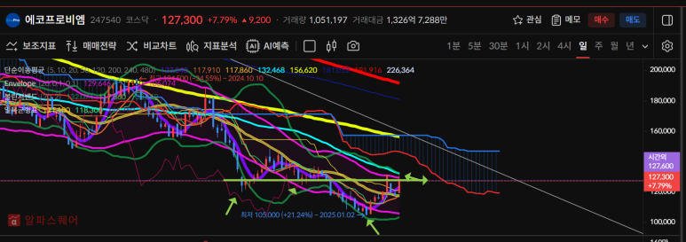 에코프로비엠은 다시 이전의 지지를 해야 했던 자리와 저항의 자리에서 마감했다.