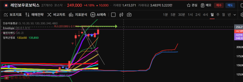 레인보우로보틱스는 이 전 저항의 자리에서 다시 저항이 나오며 마감했다.
