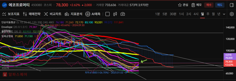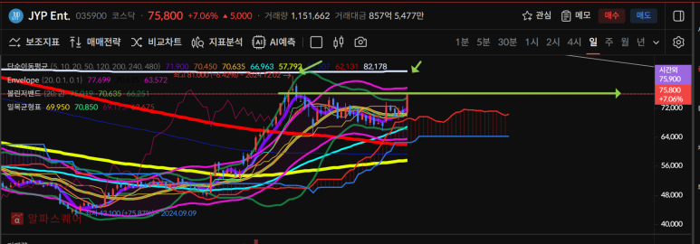 jyp는 480일선 저항 이후 다시 480일선에 가까워지는 중이다.