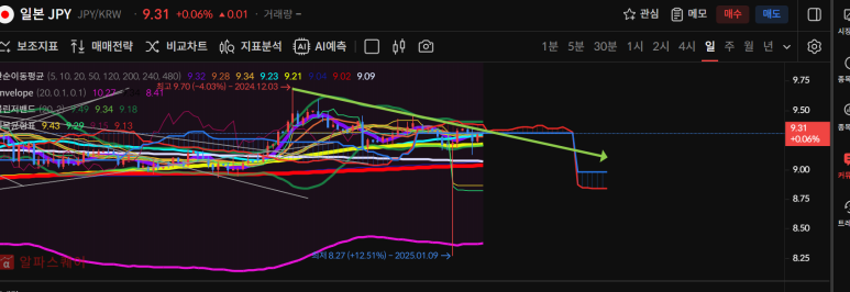 엔화는 계엄 이 후 안정화가 되고 있는 추세지만 상승의 분위기를 타고 있는 편이다.