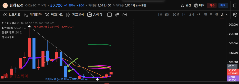 한화오션은 전고점 돌파이후 연속 상승세가 이어지고 있다.
