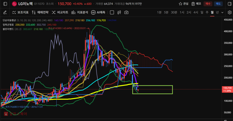 지금의 15~17만원대 회복이 중요한 위치디ㅏ.