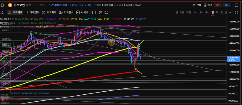 이 전 지지라인이었던 1.2억 초반대를 지켜야 하는 상황 되었다.