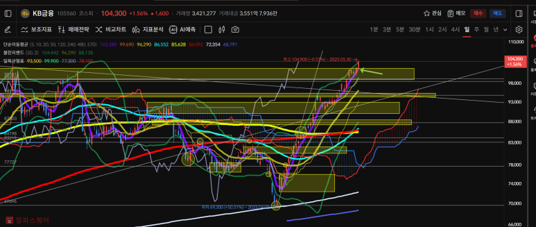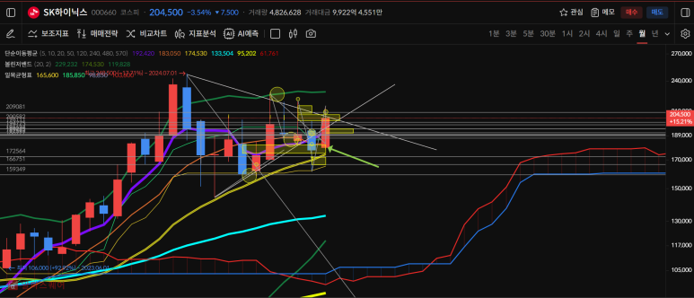 오늘은 양봉으로 마감하면서 5일선을 이어나가며 노란네모를 돌파했다.